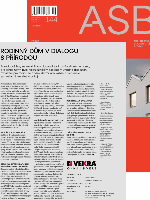 • Okna, balkonové sestavy – HS portál SLIM, vchodové dveře (vše v hliníkovém provedení); VEKRA