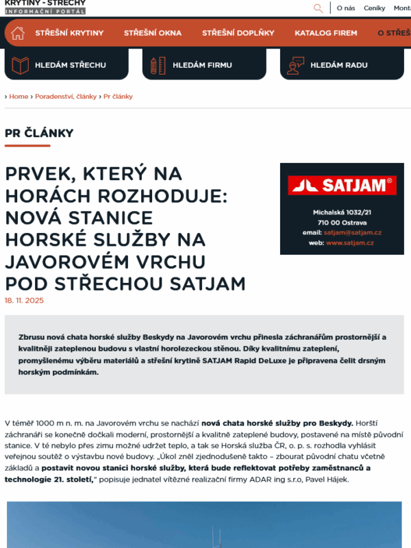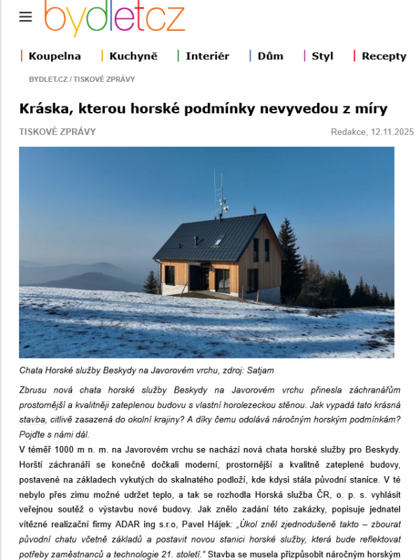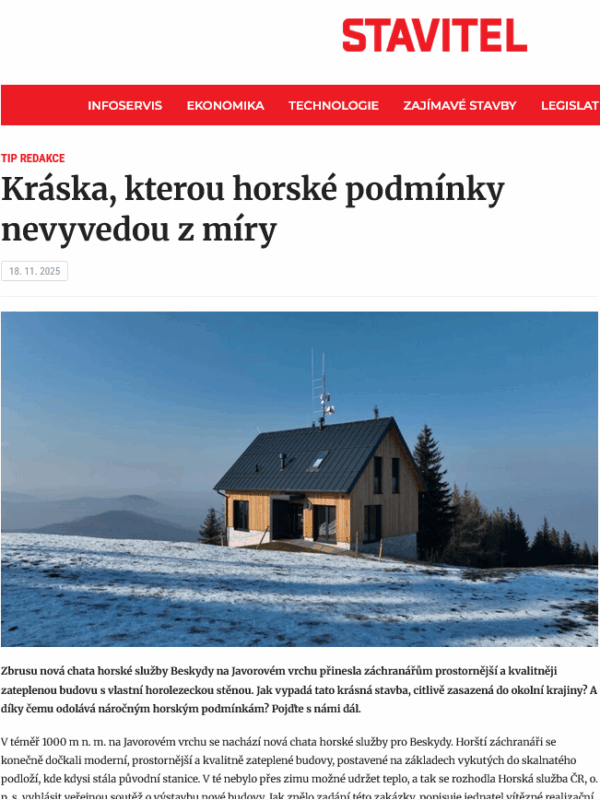 Realizace Javorový vrch - Chata Horské služby v Beskydech