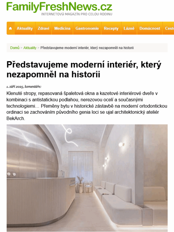 Moderní interiér, který nezapomněl na historii – Realizace Ostrovní ortodoncie