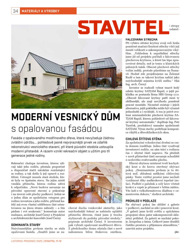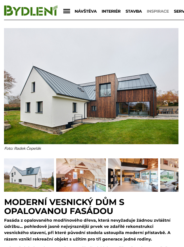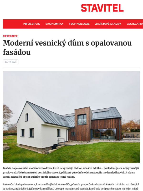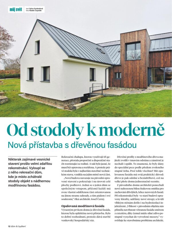 Moderní vesnický dům s opalovanou fasádou – Realizace Rekonstrukce stodoly