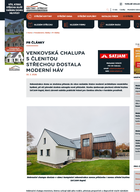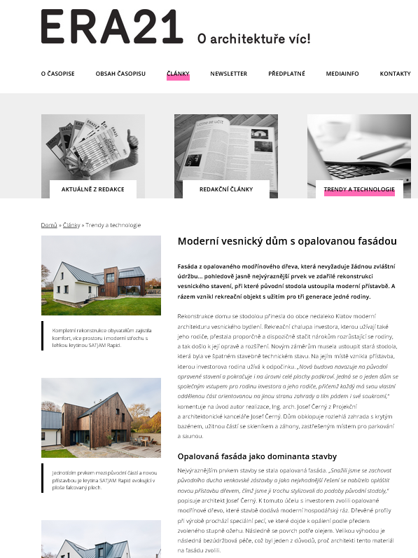novinky.cz, idnes.cz, Bydlení, Praktik, stavbaWeb.cz, Střechy-Fasády-Izolace, BLESK Bydlení, BLESK HOBBY, stavitel.cz, bydlenimagazin.cz, modernibyt.cz, strechy-fasady-izolace.cz, Stavitel, Právo Dům&bydlení, krytiny-strechy.cz, era21.cz